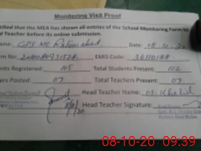 | EMIS Code: 36110188 | Name of School: GPS MC RAHIMABAD MULTAN | |||