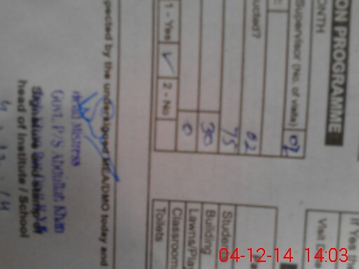 | School Visited by School Health & Nutrition Supervisor (No. of Visits) | 2 | Name1: | Sohail Muneer | Name2: | |