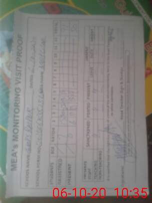 | Attendance Register | Head Teacher | MEA with School | Visit Proof |