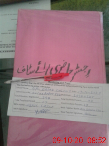 | Certified that this School was Inspected by the Undersigned MEA/DMO Today and the Information Stated Above is as Per Record. | |||||