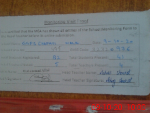 | EMIS Code: 32320936 | Name of School: GGPS CHAPATI WALA (BABA TEND DARBAR) | |||