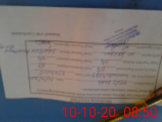 | Monitoring Date: 10-10-2020 | Start Time: 10-10-2020 08:04 AM | End Time: 10-10-2020 08:53 AM | Name of MEA: ZM**** Ak**** | |