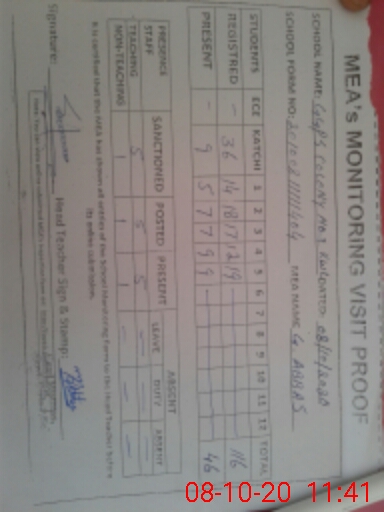 | Attendance Register | Head Teacher | MEA with School | Visit Proof |