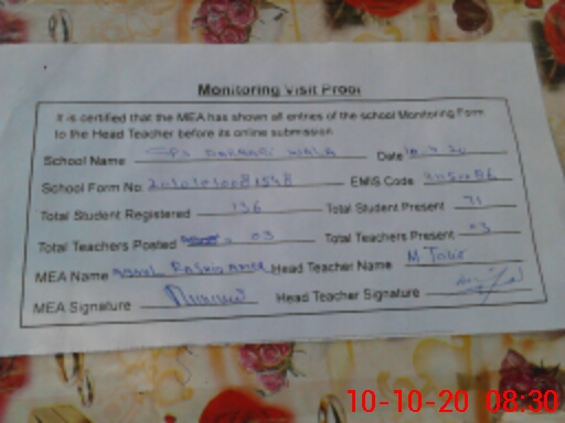 | Certified that this School was Inspected by the Undersigned MEA/DMO Today and the Information Stated Above is as Per Record. | |||||