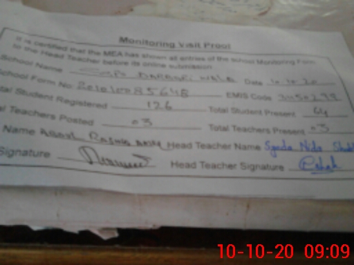 | Remarks (Use Separate Page if Required): AEO NOT VISTED THIS SCHOOL IN SEP 2020 FIFTH CLASS PERMOTED | |||||