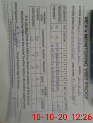 | Monitoring Date: 10-10-2020 | Start Time: 10-10-2020 10:08 AM | End Time: 10-10-2020 12:31 PM | Name of MEA: M.Ta**** Iq**** (S**** | |