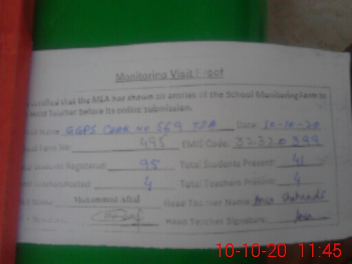 | EMIS Code: 32320399 | Name of School: GGPS CHAK NO. 569/TDA | |||