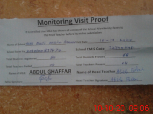 | Certified that this School was Inspected by the Undersigned MEA/DMO Today and the Information Stated Above is as Per Record. | |||||