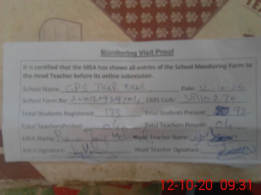 | EMIS Code: 38110270 | Name of School: GPS JHAR BHAR | |||