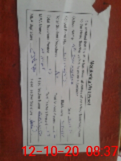 | Monitoring Date: 12-10-2020 | Start Time: 12-10-2020 08:23 AM | End Time: 12-10-2020 08:39 AM | Name of MEA: Mu**** Ha**** BN**** 32 | |