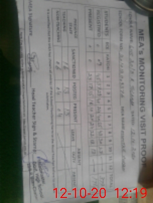 | Attendance Register | Head Teacher | MEA with School | Visit Proof |