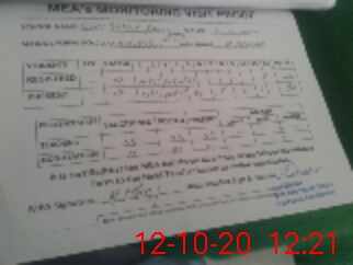 | Monitoring Date: 12-10-2020 | Start Time: 12-10-2020 11:43 AM | End Time: 12-10-2020 12:30 PM | Name of MEA: MU**** AS**** | |