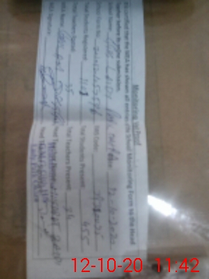 | Monitoring Date: 12-10-2020 | Start Time: 12-10-2020 10:57 AM | End Time: 12-10-2020 11:43 AM | Name of MEA: GH**** DA**** (R**** | |