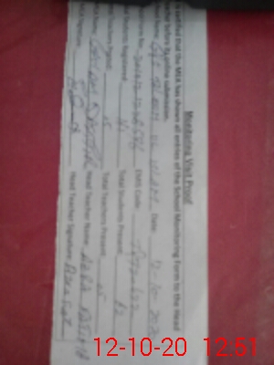| Attendance Register | Head Teacher | MEA with School | Visit Proof |