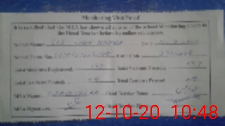 | Attendance Register | Head Teacher | MEA with School | Visit Proof |