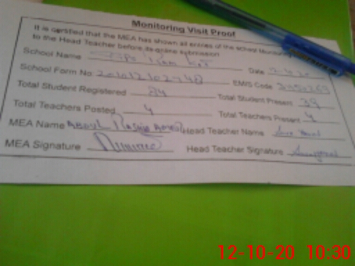 | Attendance Register | Head Teacher | MEA with School | Visit Proof |