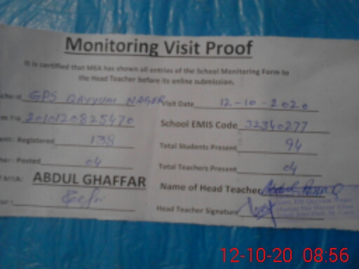 | EMIS Code: 32340277 | Name of School: GPS QAYYUM NAGER | |||