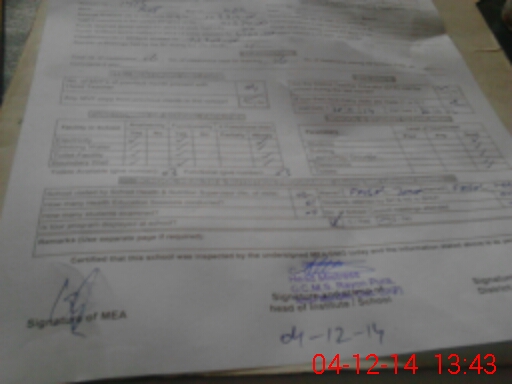 | Certified that this School was Inspected by the Undersigned MEA/DMO Today and the Information Stated Above is as Per Record. | |||||