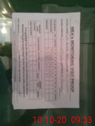 | Attendance Register | Head Teacher | MEA with School | Visit Proof |