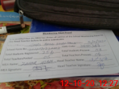 | Attendance Register | Head Teacher | MEA with School | Visit Proof |