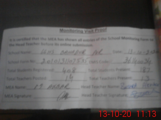 | Certified that this School was Inspected by the Undersigned MEA/DMO Today and the Information Stated Above is as Per Record. | |||||