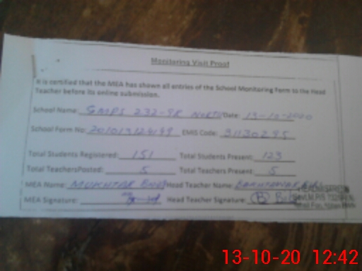 | Certified that this School was Inspected by the Undersigned MEA/DMO Today and the Information Stated Above is as Per Record. | |||||