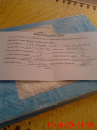 | Attendance Register | Head Teacher | MEA with School | Visit Proof |