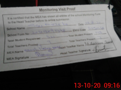 | Attendance Register | Head Teacher | MEA with School | Visit Proof |