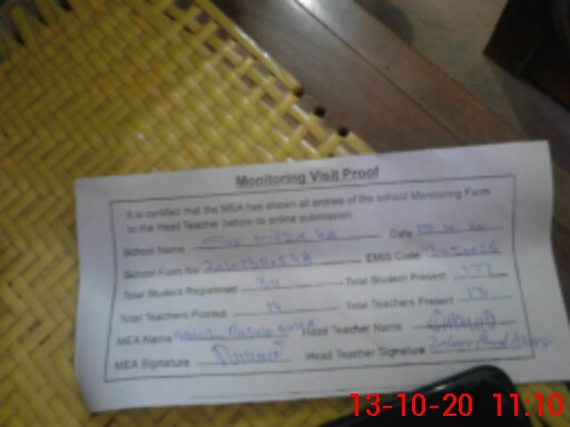 | Attendance Register | Head Teacher | MEA with School | Visit Proof |