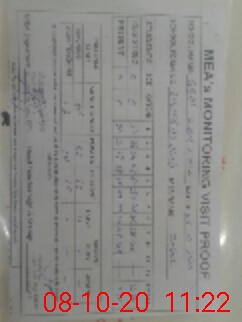 | Monitoring Date: 08-10-2020 | Start Time: 08-10-2020 10:05 AM | End Time: 08-10-2020 11:27 AM | Name of MEA: MU**** ZA**** IQ**** | |