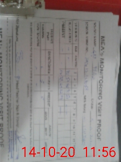 | Monitoring Date: 14-10-2020 | Start Time: 14-10-2020 11:23 AM | End Time: 14-10-2020 12:00 PM | Name of MEA: M.Is**** (S**** 03**** | |