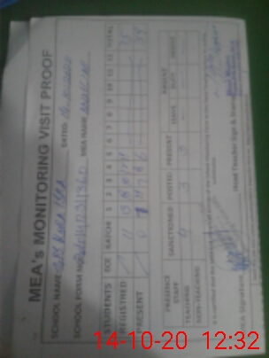 | Attendance Register | Head Teacher | MEA with School | Visit Proof |