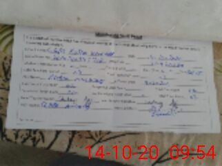| Monitoring Date: 14-10-2020 | Start Time: 14-10-2020 09:02 AM | End Time: 14-10-2020 09:57 AM | Name of MEA: Sa**** Ah**** | |