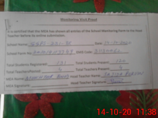 | EMIS Code: 31130062 | Name of School: GGPS CHAK 231/9-R | |||