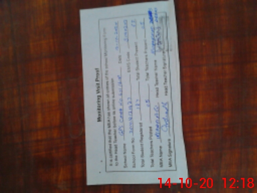 | Attendance Register | Head Teacher | MEA with School | Visit Proof |