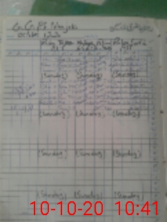 | CNIC | Full Name | Designation | R/C | Absence During Last Calender Month |