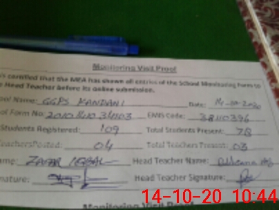 | Certified that this School was Inspected by the Undersigned MEA/DMO Today and the Information Stated Above is as Per Record. | |||||