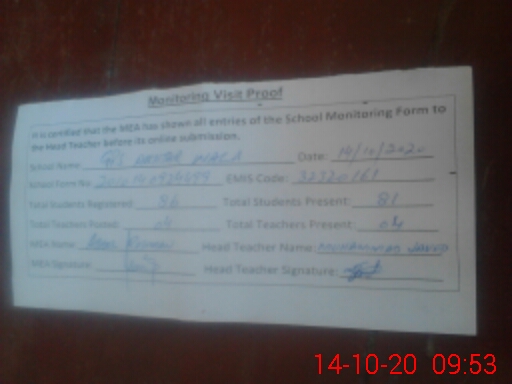 | Certified that this School was Inspected by the Undersigned MEA/DMO Today and the Information Stated Above is as Per Record. | |||||