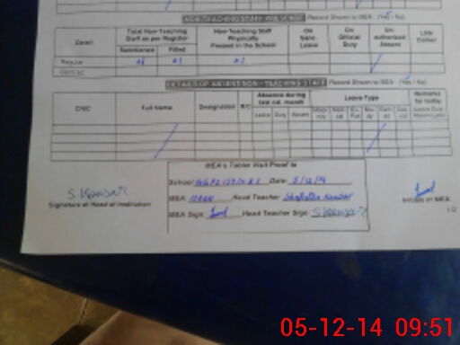 | Attendance Register | Head Teacher | MEA with School | Visit Proof |