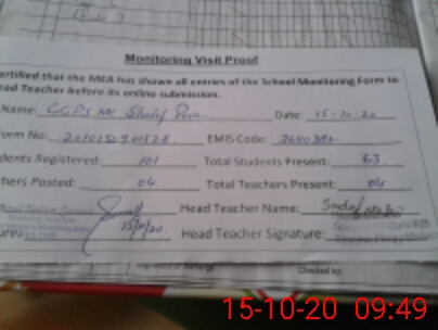 | Certified that this School was Inspected by the Undersigned MEA/DMO Today and the Information Stated Above is as Per Record. | |||||