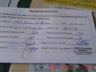 | EMIS Code: 36130131 | Name of School: GPS JAMI UL ALOOM DOULAT GATE MULTAN | |||