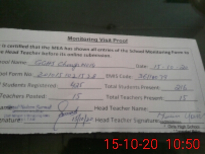 | Certified that this School was Inspected by the Undersigned MEA/DMO Today and the Information Stated Above is as Per Record. | |||||