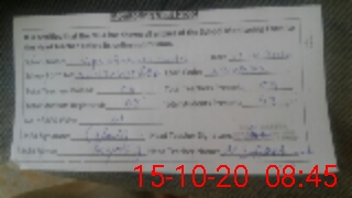 | Monitoring Date: 15-10-2020 | Start Time: 15-10-2020 08:23 AM | End Time: 15-10-2020 08:46 AM | Name of MEA: Mu**** Yo**** | |