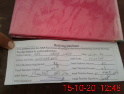 | Attendance Register | Head Teacher | MEA with School | Visit Proof |
