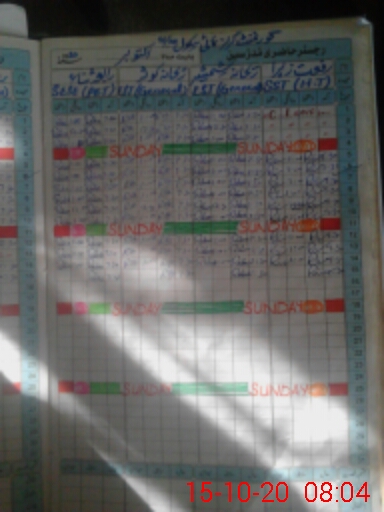 | CNIC | Full Name | Designation | R/C | Absence During Last Calender Month |