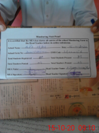| Attendance Register | Head Teacher | MEA with School | Visit Proof |
