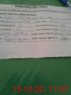 | Attendance Register | Head Teacher | MEA with School | Visit Proof |