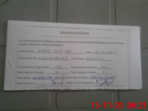 | Attendance Register | Head Teacher | MEA with School | Visit Proof |