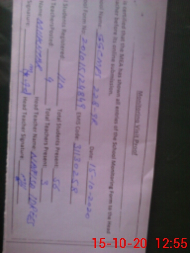 | Monitoring Date: 15-10-2020 | Start Time: 15-10-2020 12:24 PM | End Time: 15-10-2020 12:57 PM | Name of MEA: Mu**** ah**** BN**** 29 | |