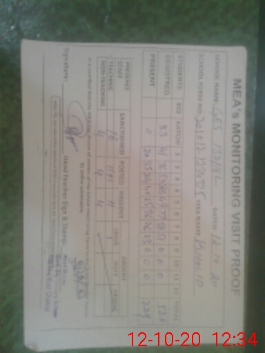 | Certified that this School was Inspected by the Undersigned MEA/DMO Today and the Information Stated Above is as Per Record. | |||||